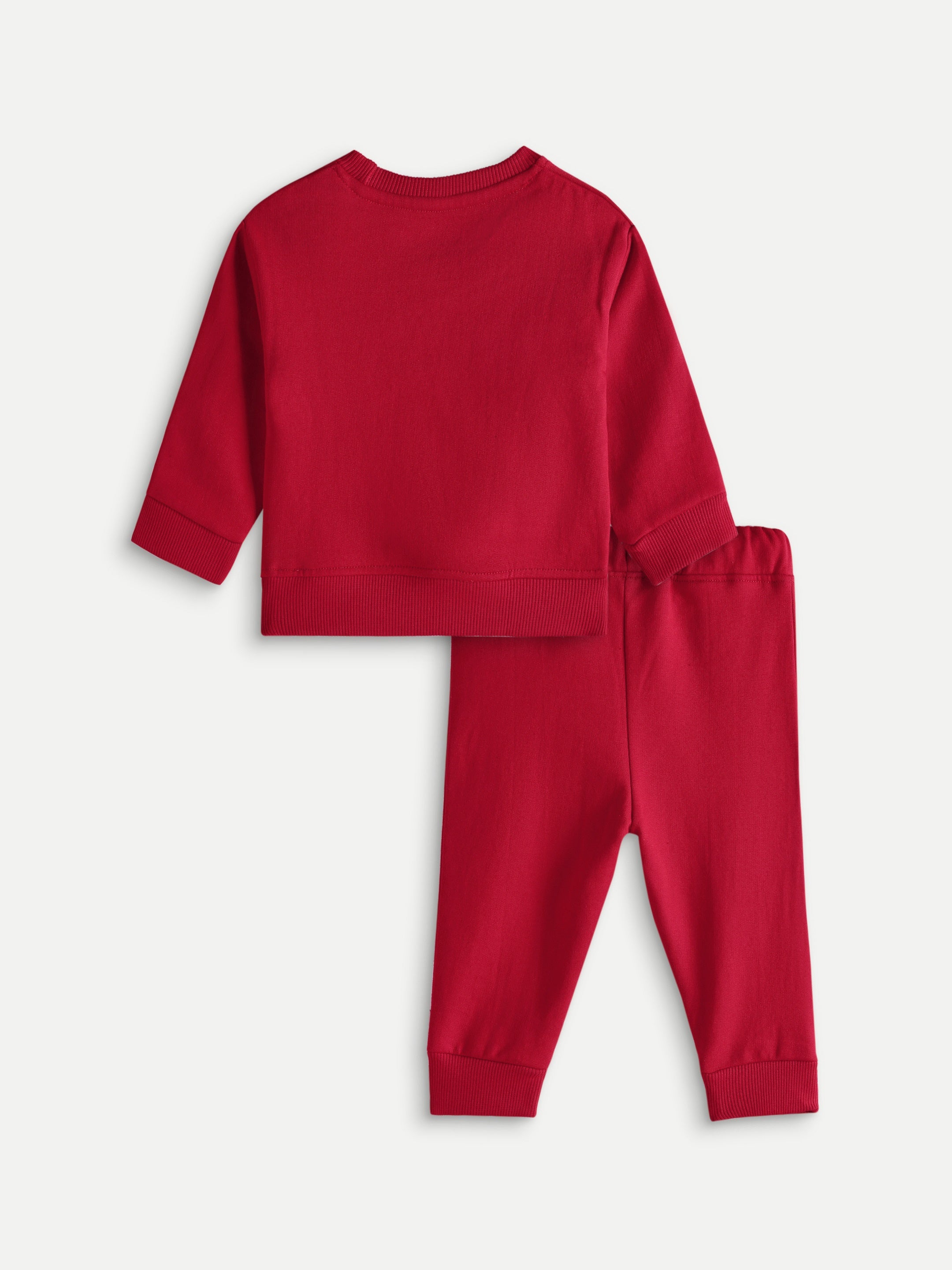 Cozy fleece co-ord set featuring a dropped-shoulder sweatshirt with ribbed collar, cuffs, and hem, paired with matching jogger pants designed with a ribbed waistband and ankle cuffs.