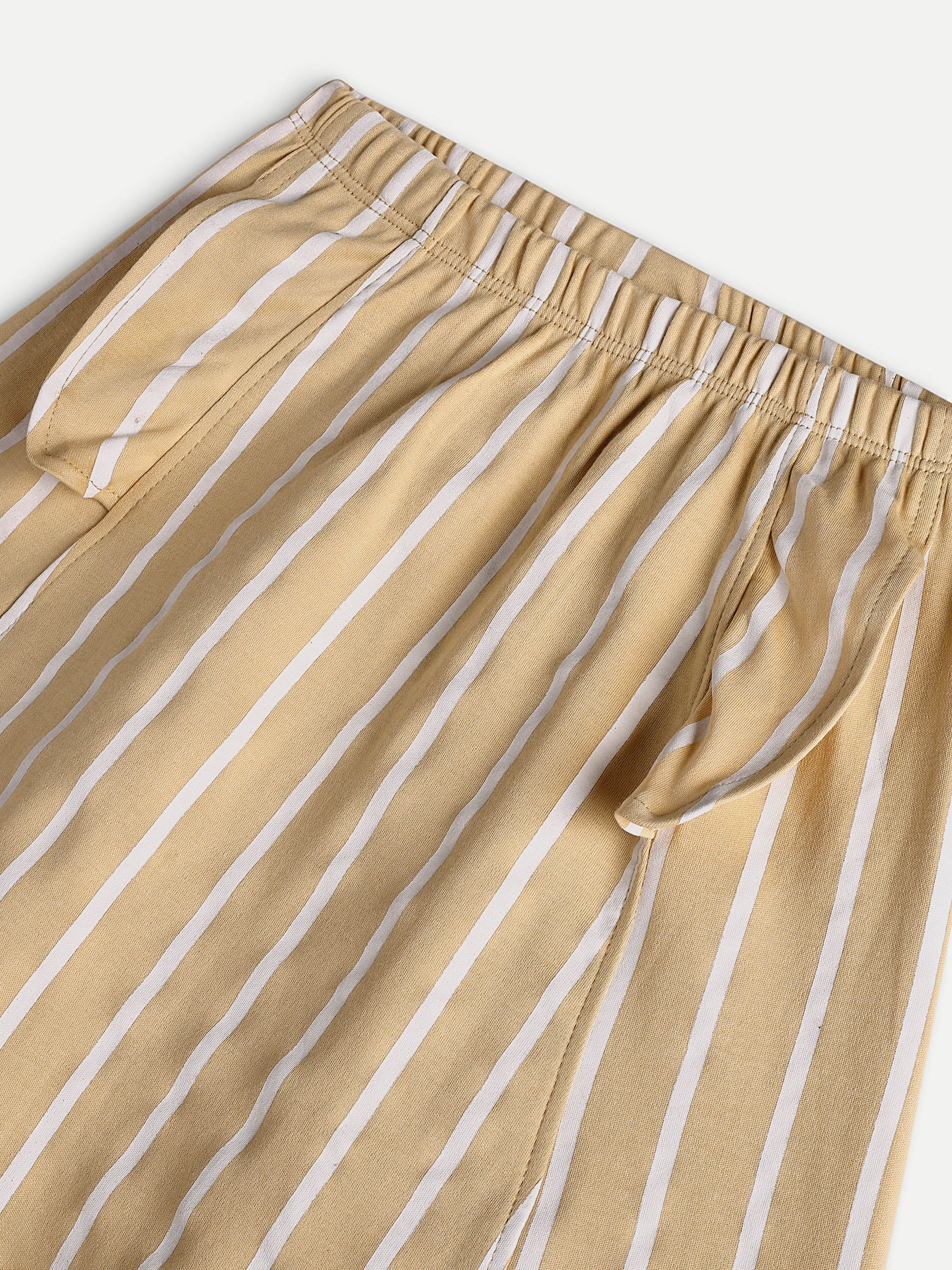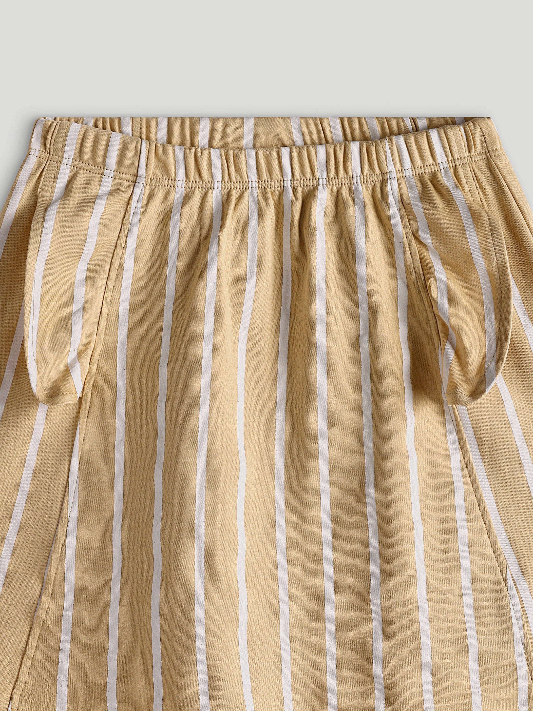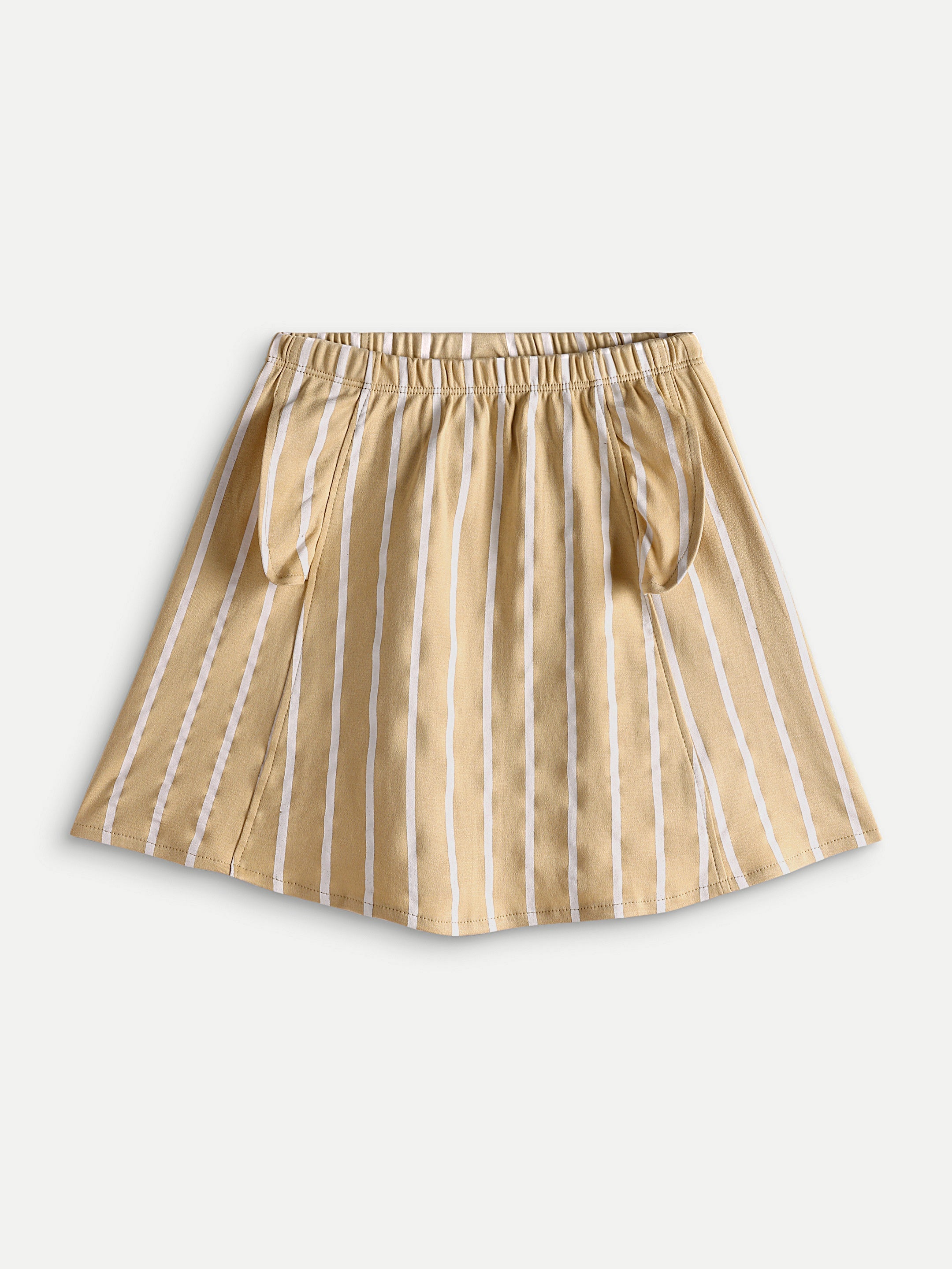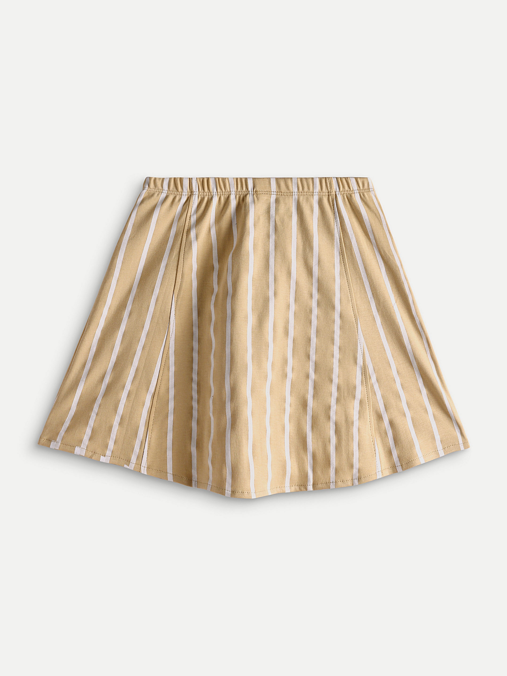 Cotton two-piece set includes a striped crop top and skirt, both adorned with playful frills. The back zip adds convenience, while the soft fabric ensures comfort.