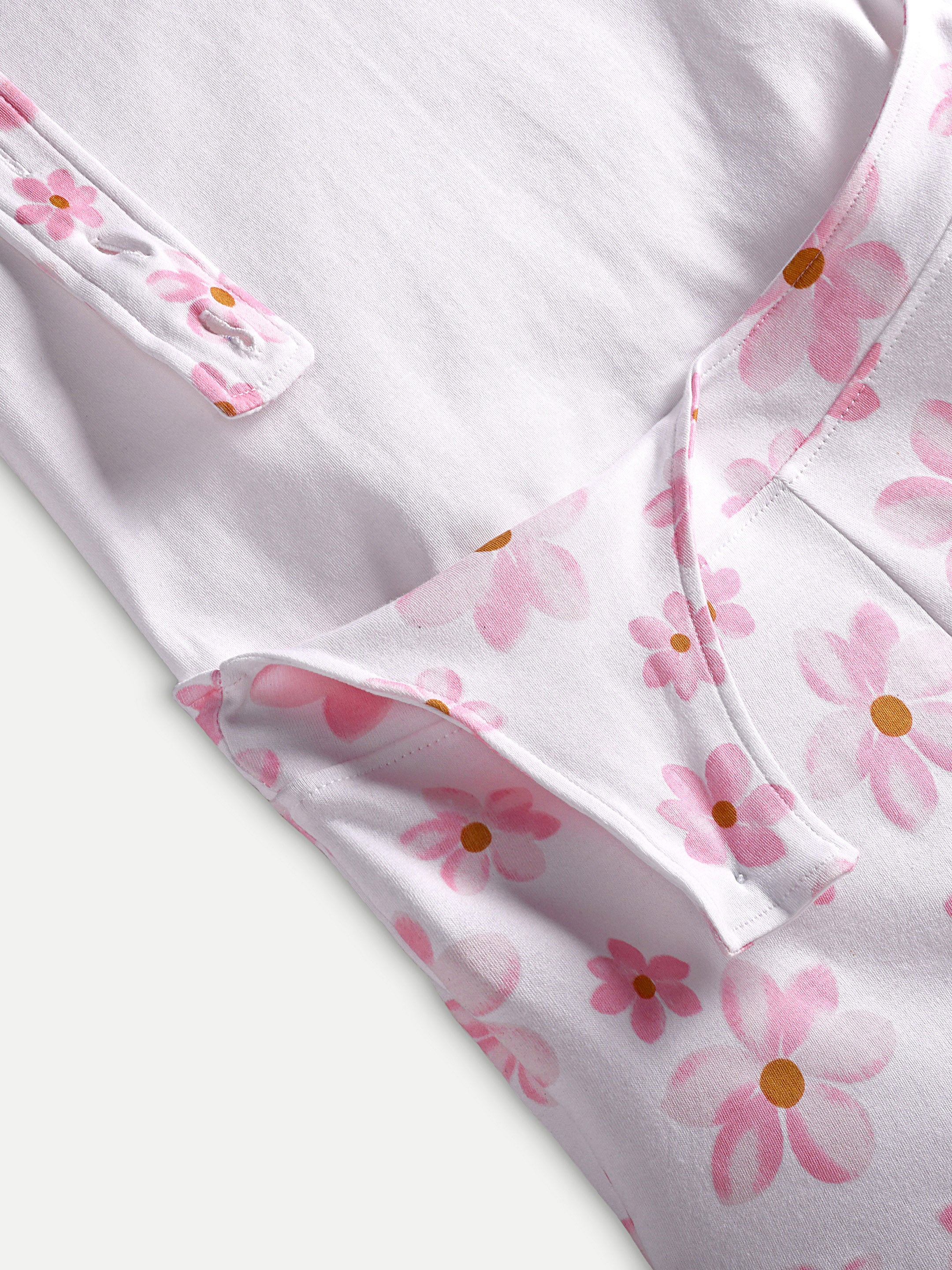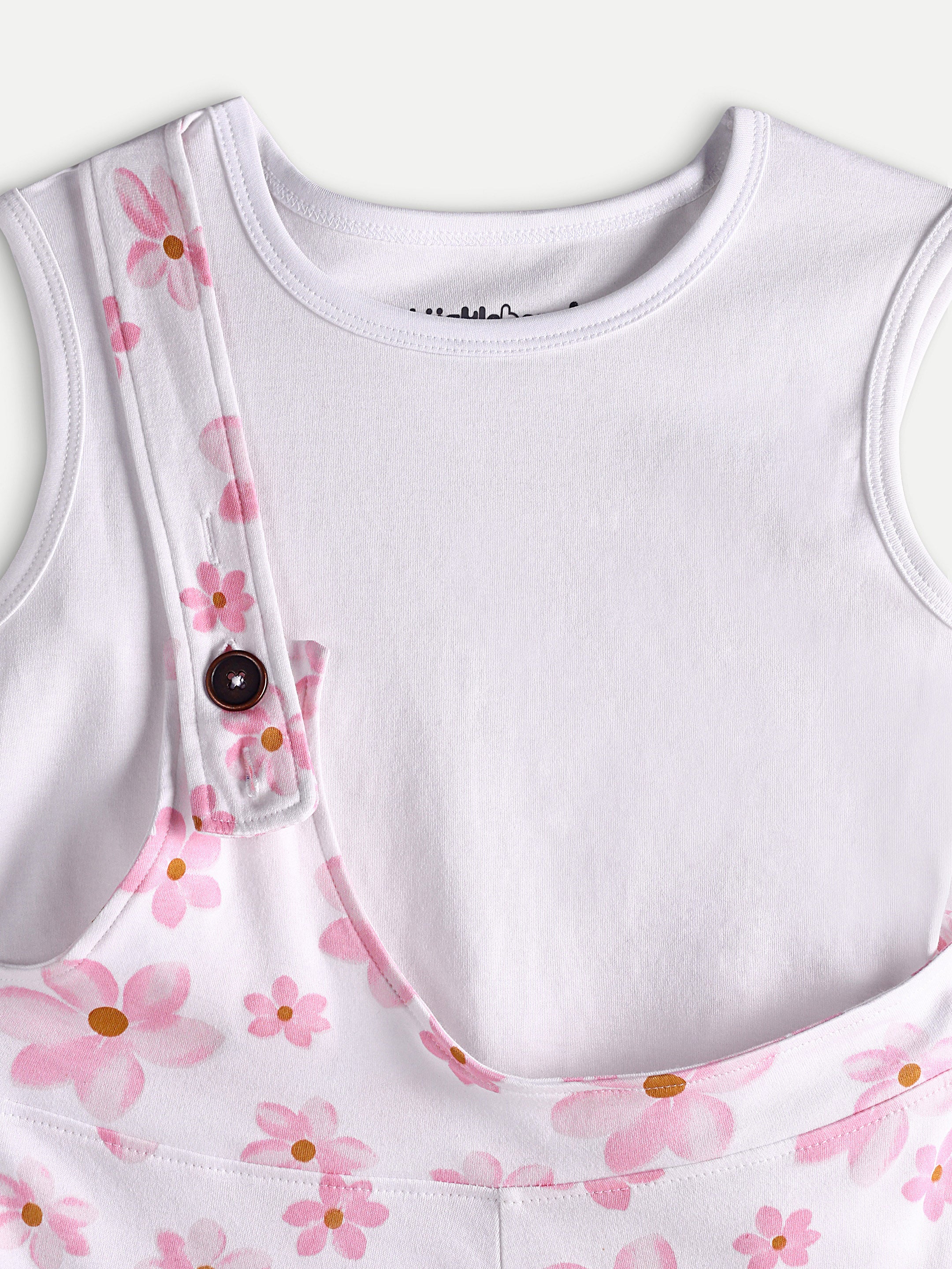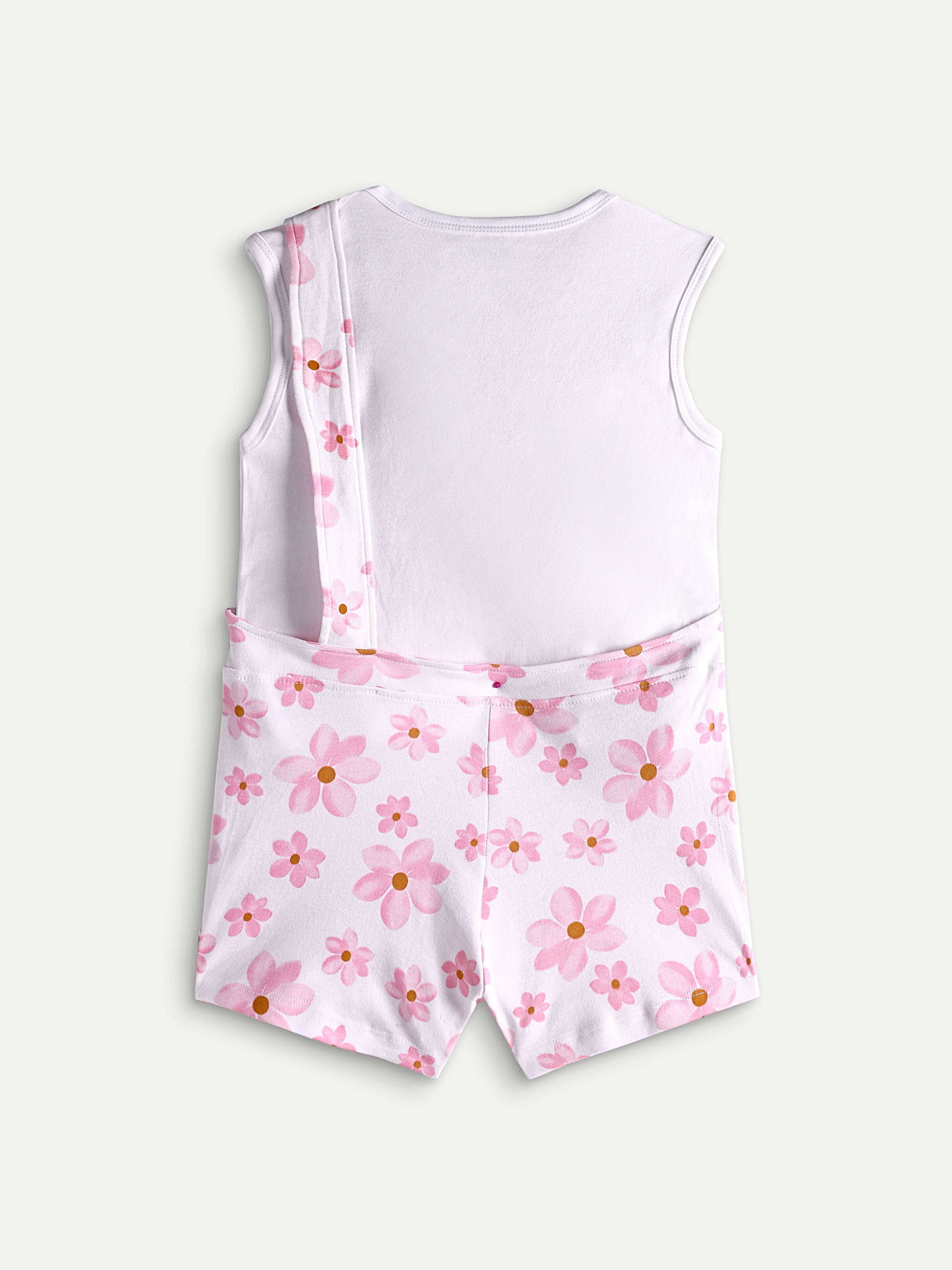 This 2-piece playsuit features a floral printed bottom with a solid tank top, crafted in soft cotton for comfort. Three side holes for the adjustment.