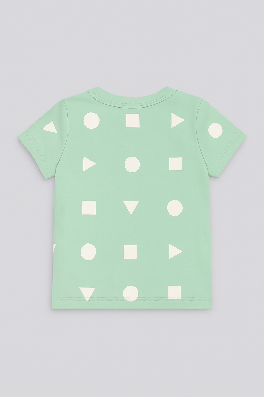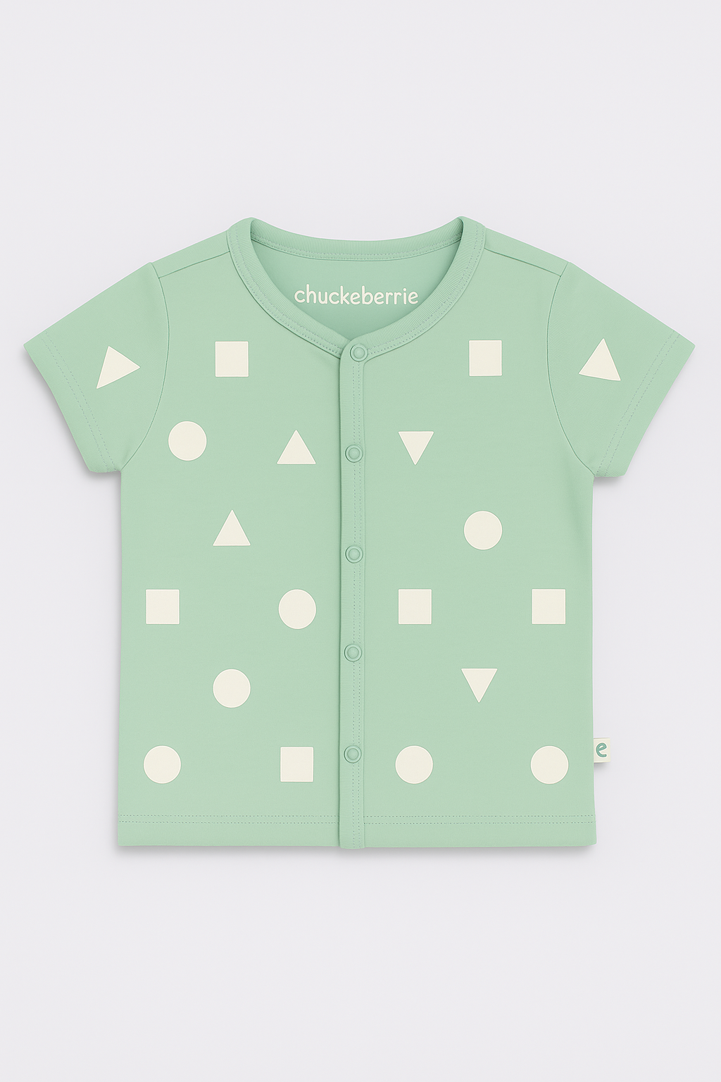 Classic geometric print snap button t-shirt in soft, printed cotton with a ribbed collar, and a straight-cut hem.