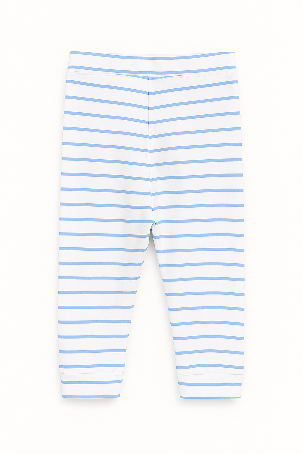 Soft cotton joggers with horizontal stripes and soft elasticated waistband. Straight pants with rib at the hem.