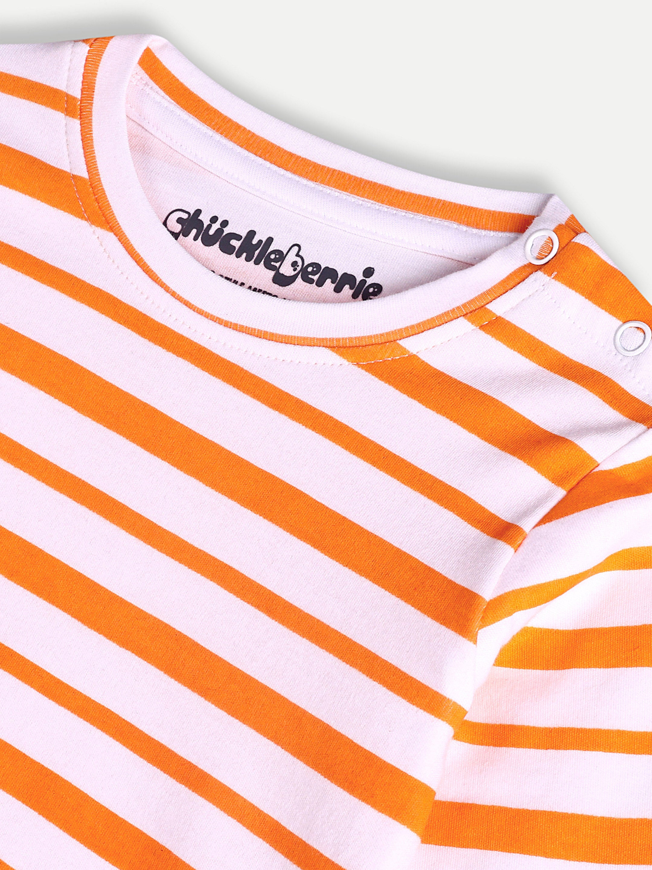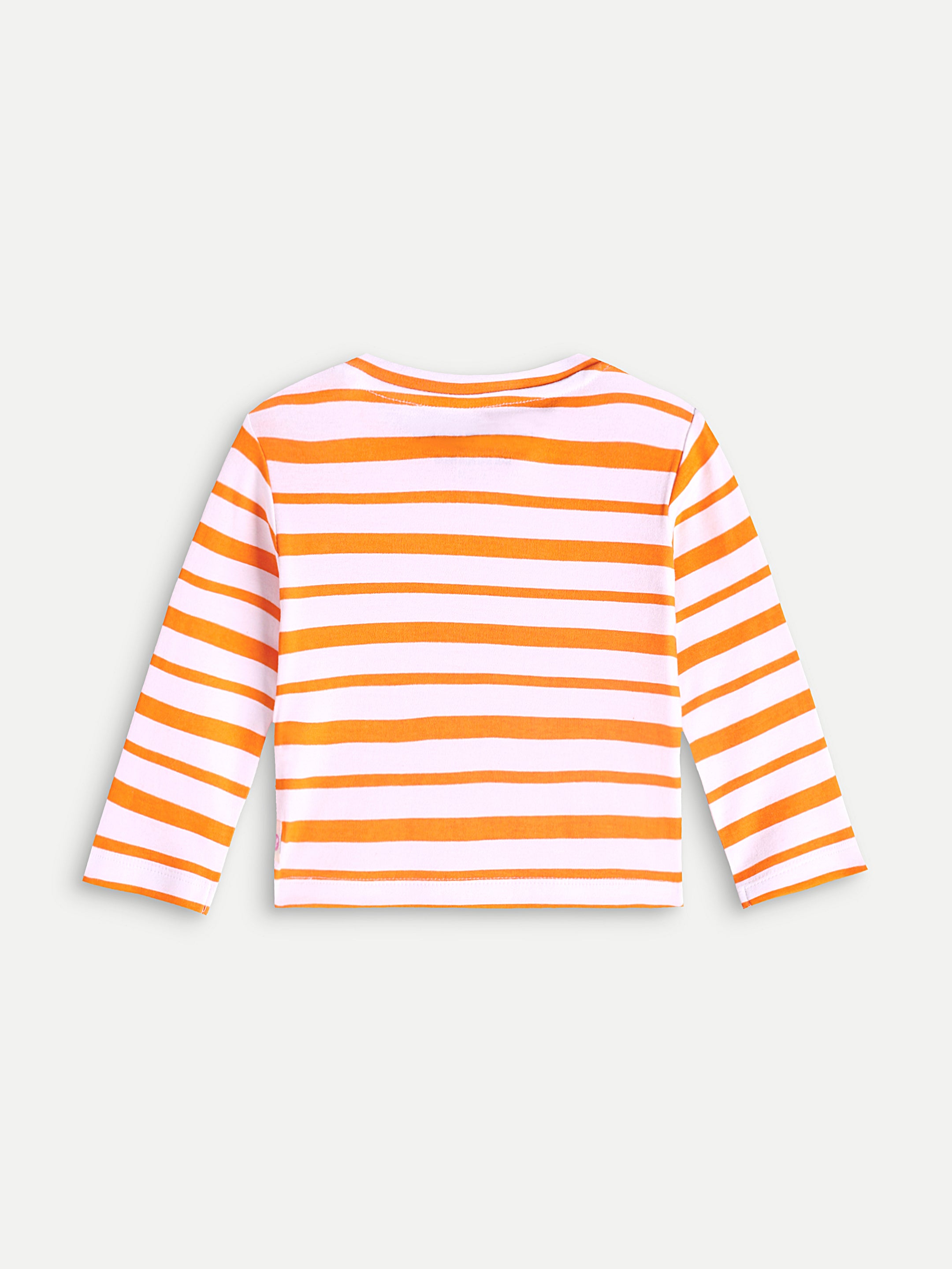 Stripe t-shirt with full sleeves, round neck with snap buttons on shoulder and made from cotton interlock.