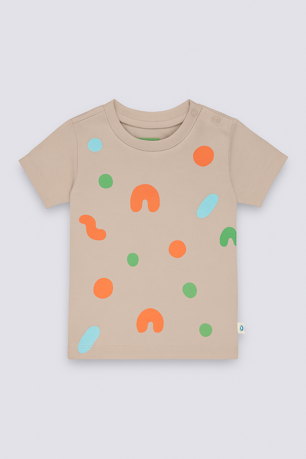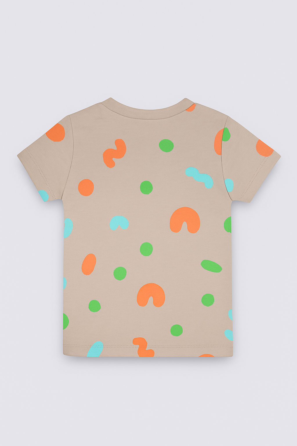 Soft, abstract print basic cotton t-shirt with a round, rib-trimmed neckline and a straight cut hem.