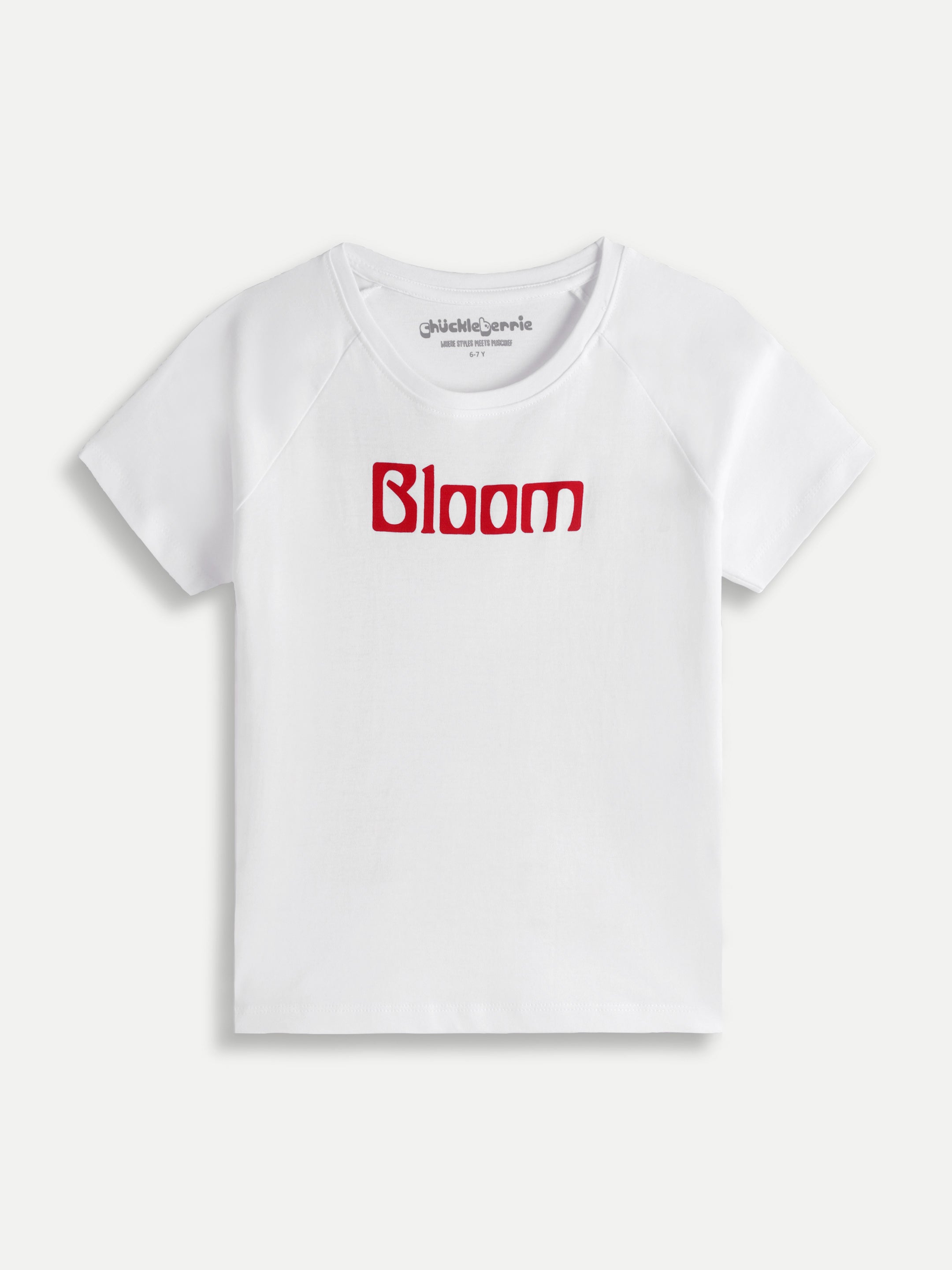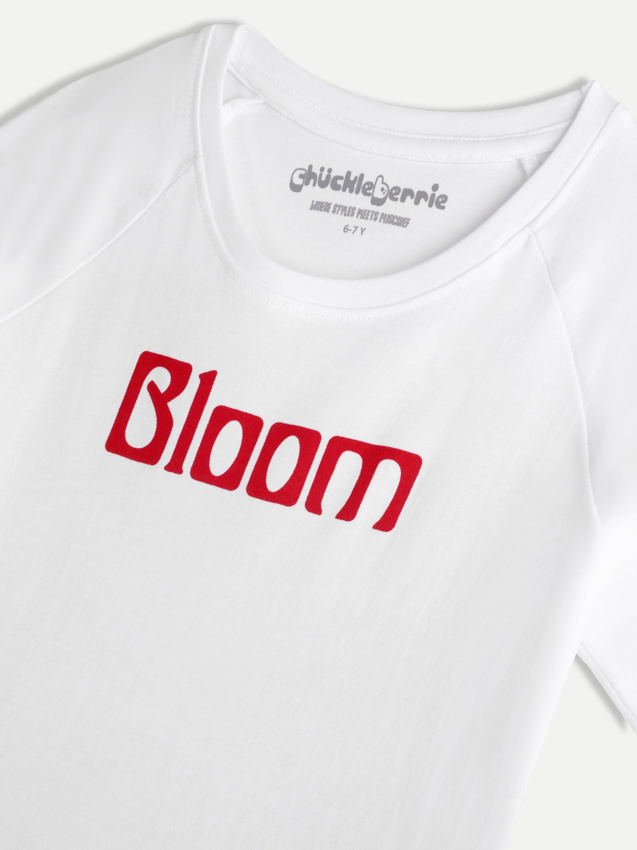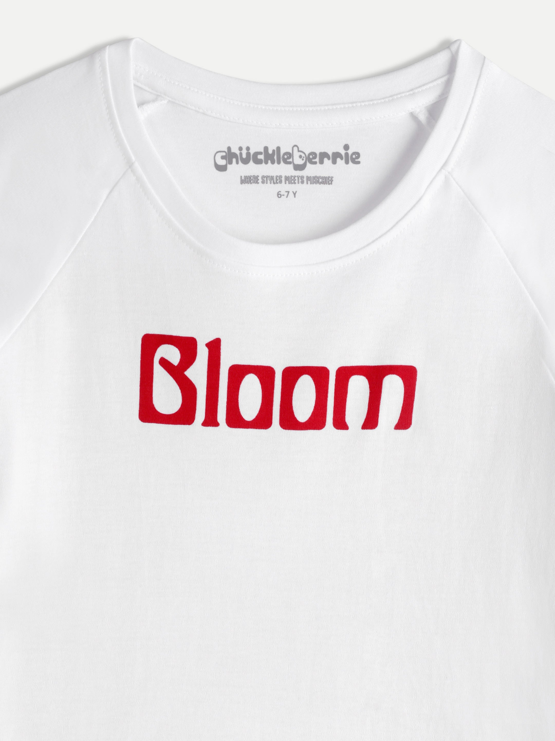Unisex cotton interlock, raglan-sleeve T-shirt featuring a ribbed crew neckline and bold front graphic text. The back showcases a large abstract floral red print, adding an artistic and modern statement to the casual silhouette.