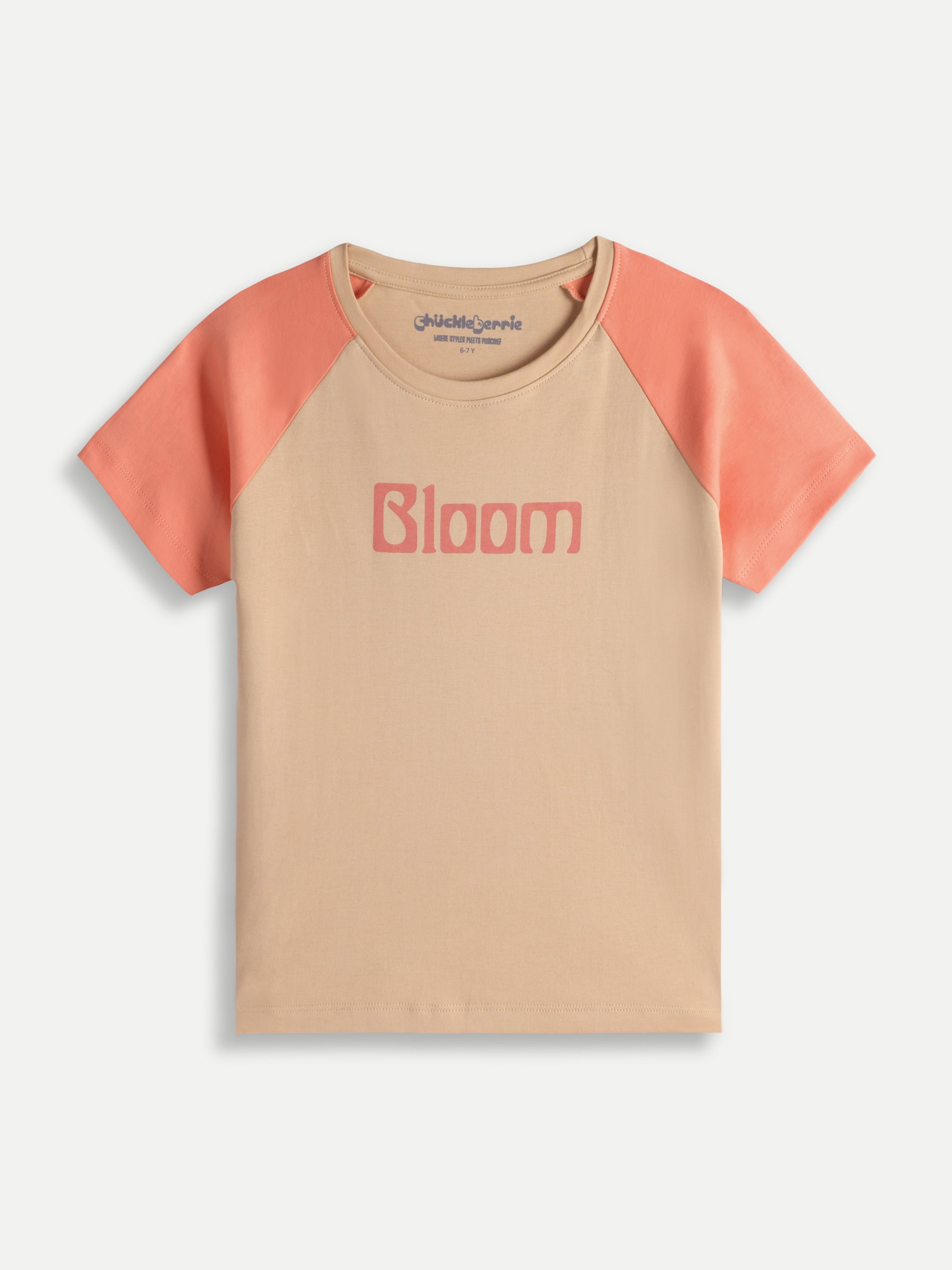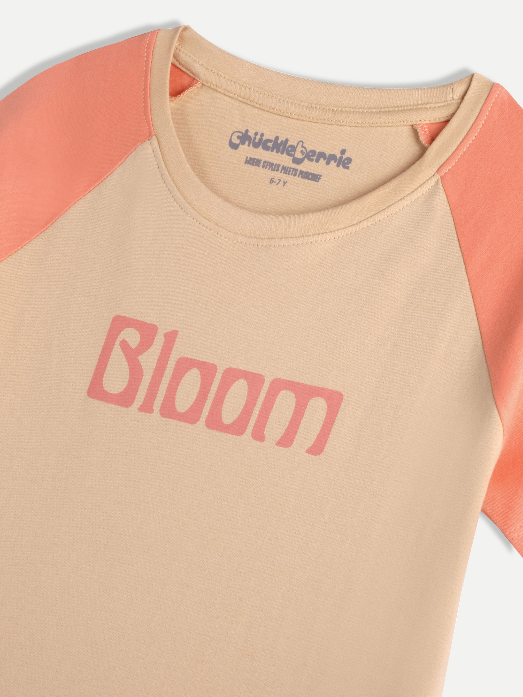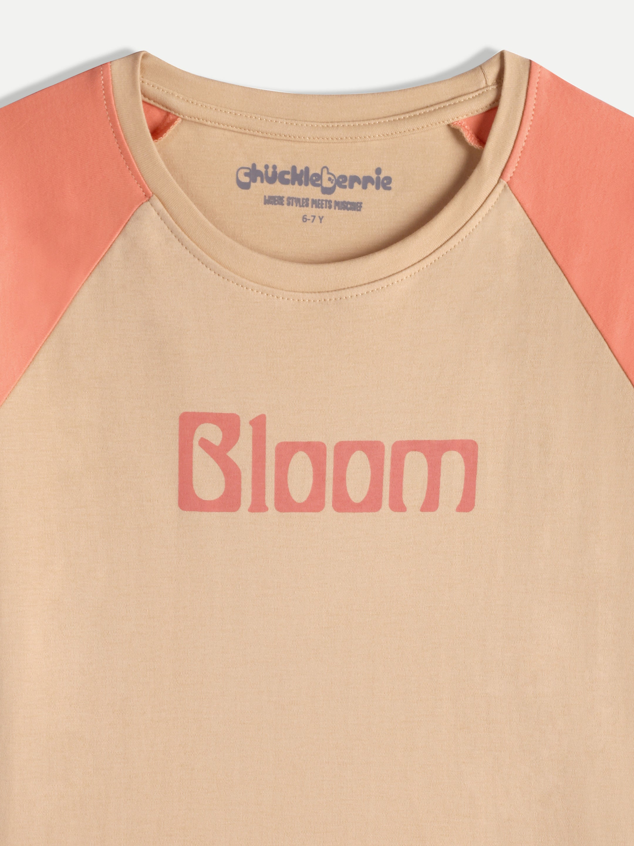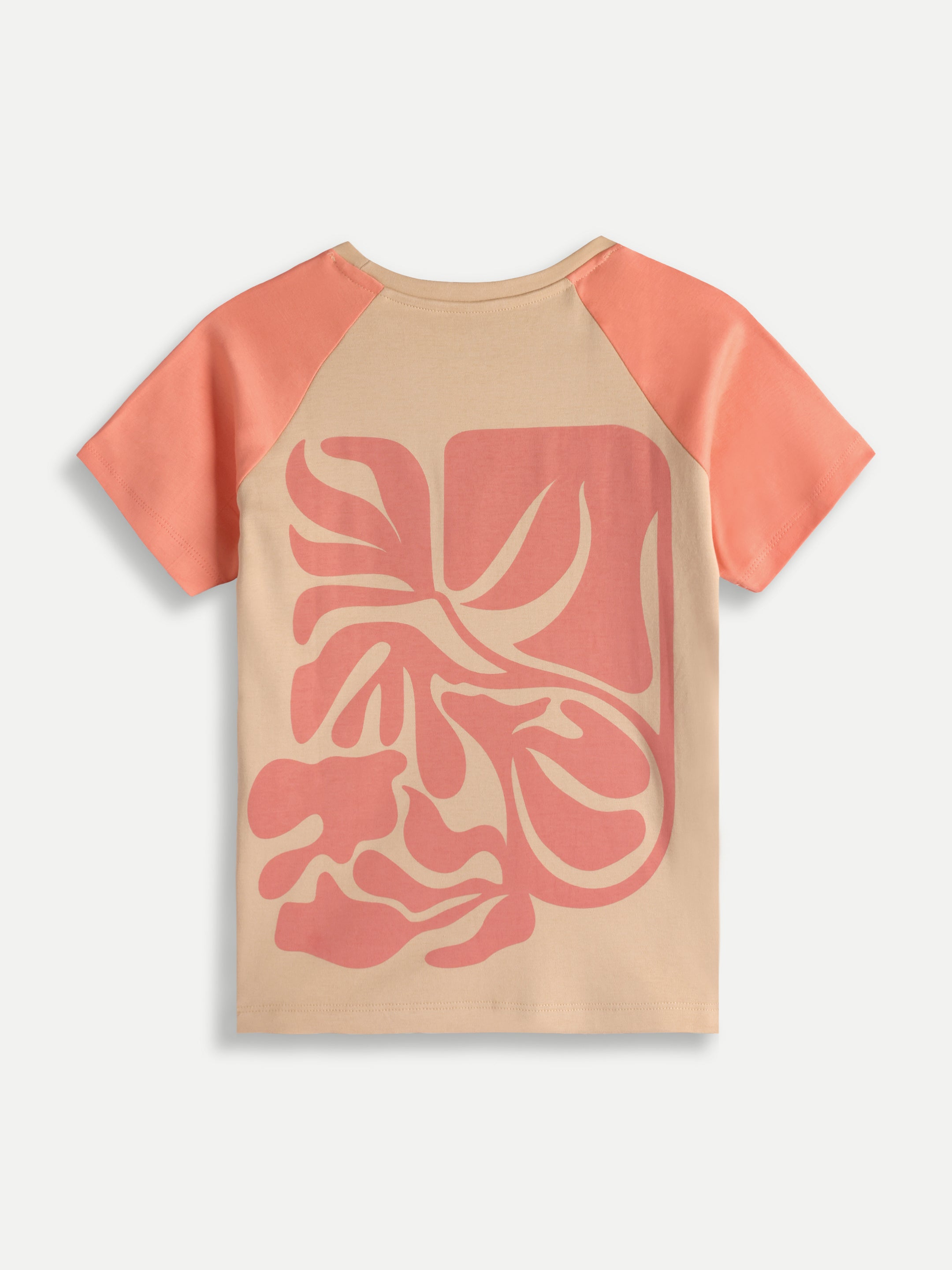 Contrast coloured unisex interlock, raglan-sleeve T-shirt featuring a ribbed crew neckline and bold front graphic text. The back showcases a large abstract floral red print, adding an artistic and modern statement to the casual silhouette.