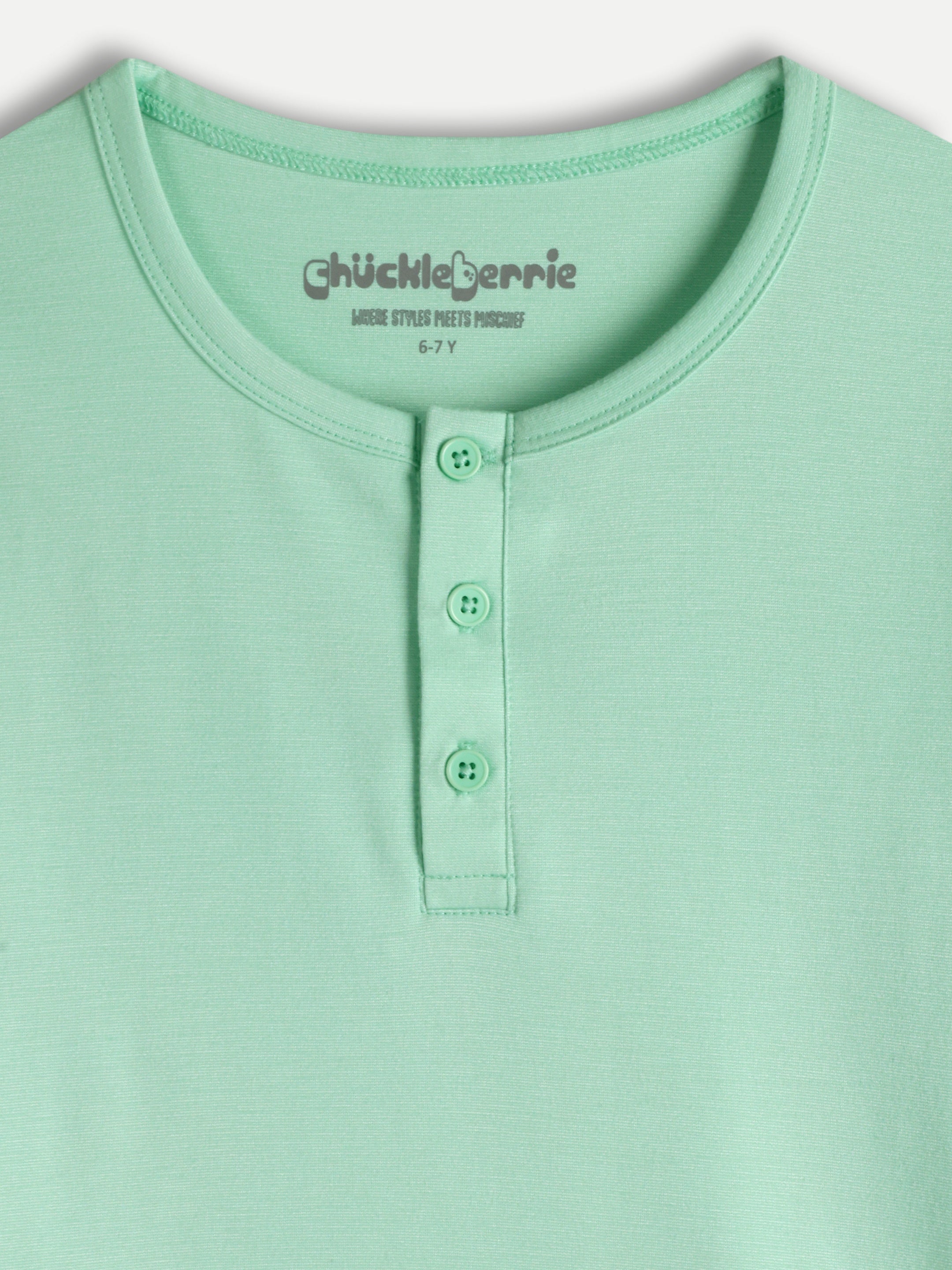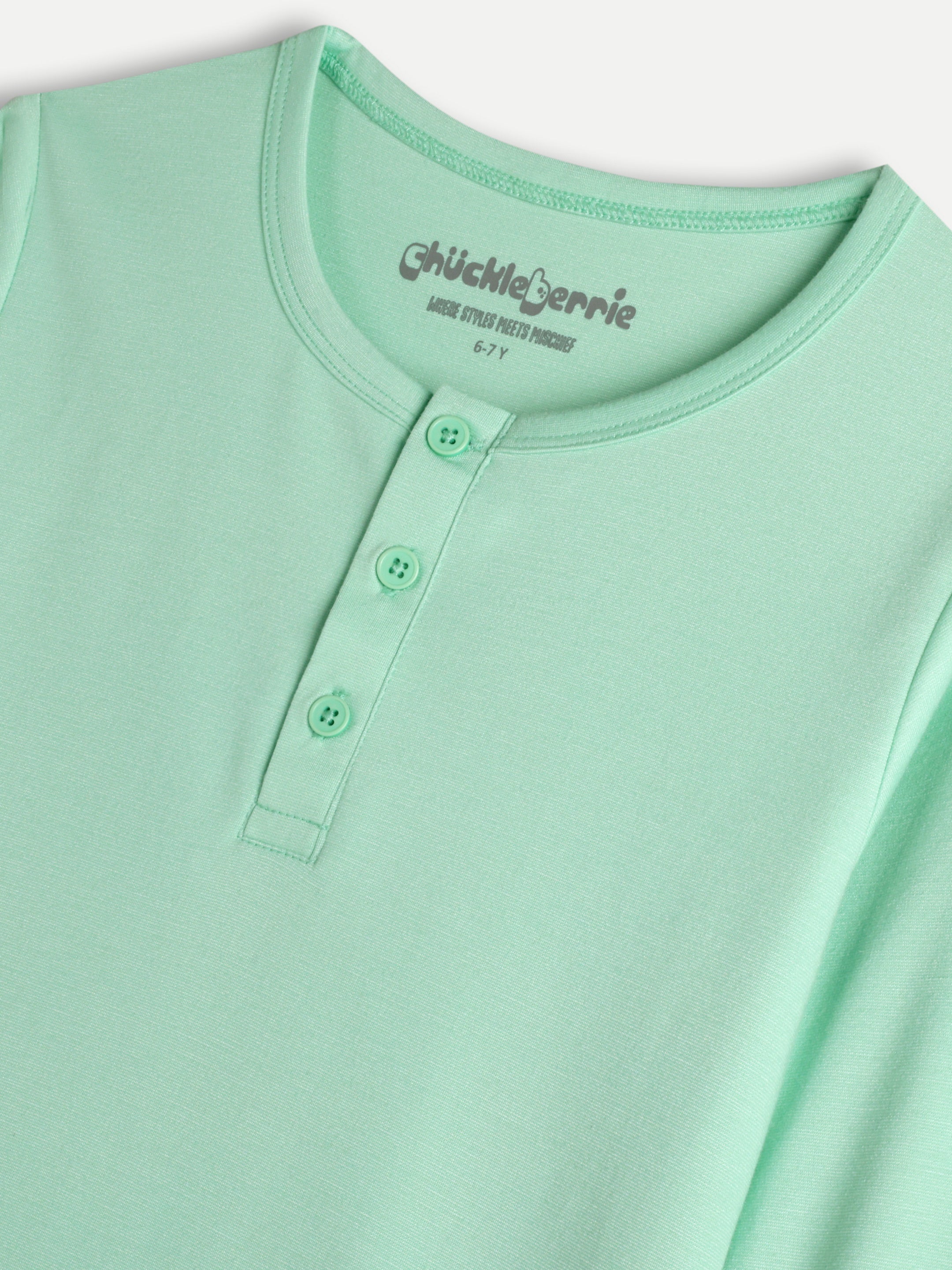 94% tensil 6% Elastane fullsleeves t-shirt with front button placket detail. Featuring round neckline and straight cut hem.