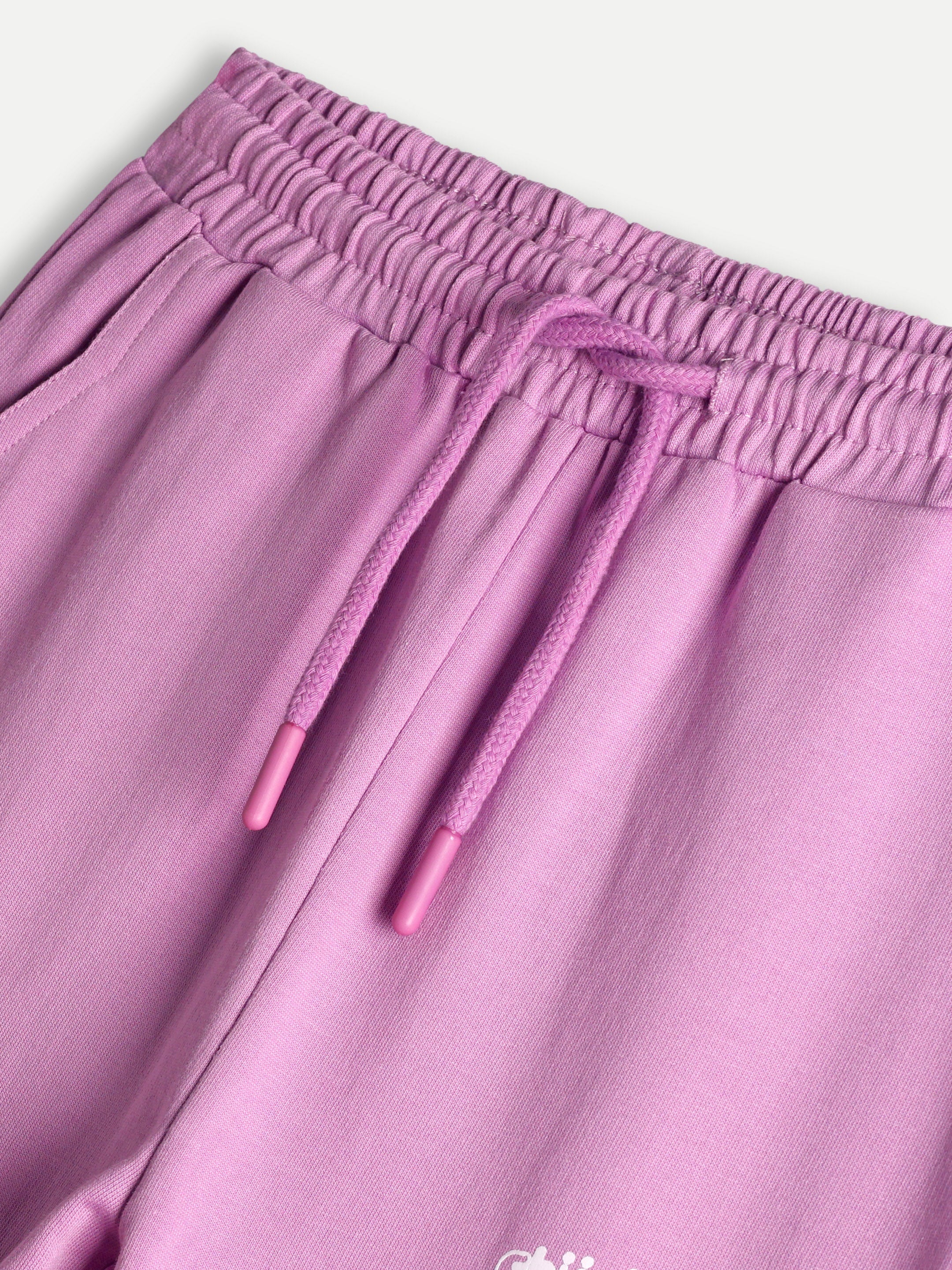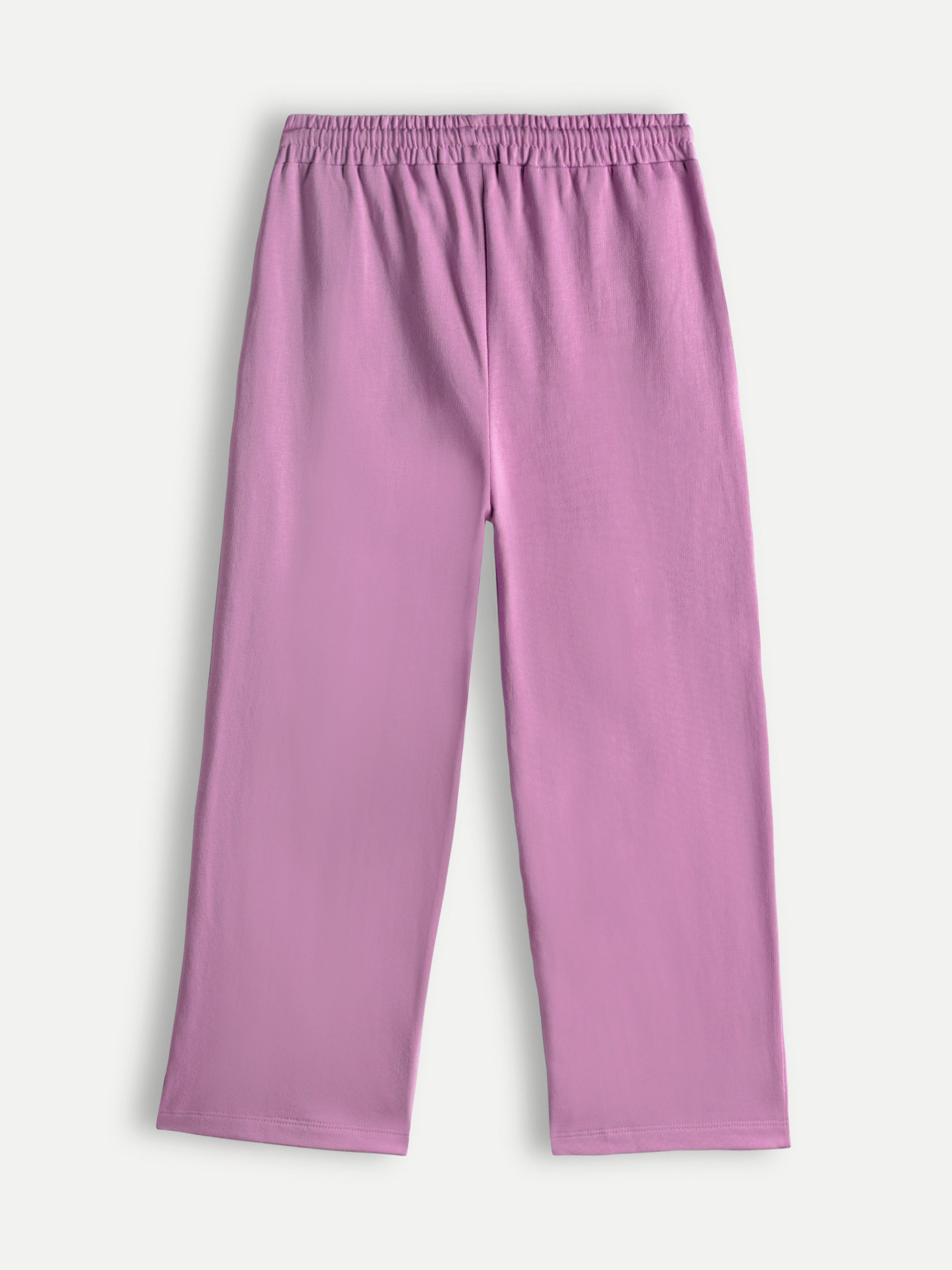 Wide leg, full length cotton french terry track pant with elasticated waistband and adjustable drawstring. Featuring functional side pockets.